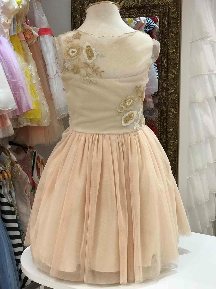 VESTIDO DE FESTA INFANTIL PETIT CHERIE BEGE BORDADO