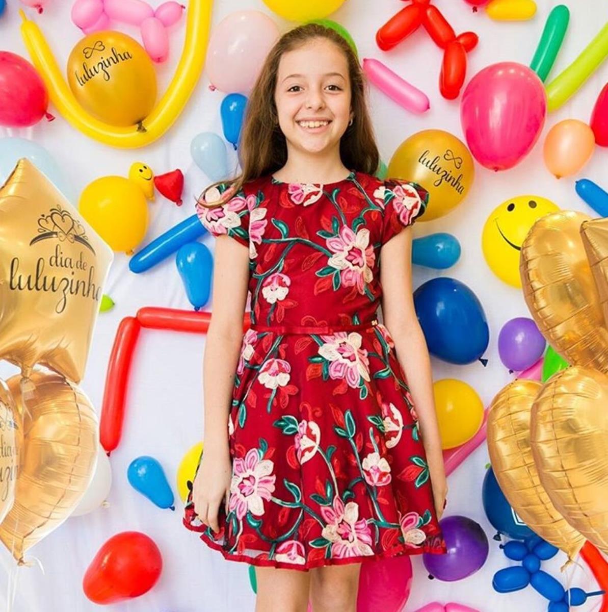 VESTIDO DE FESTA INFANTIL VERMELHO TULE BORDADO LULUZINHA