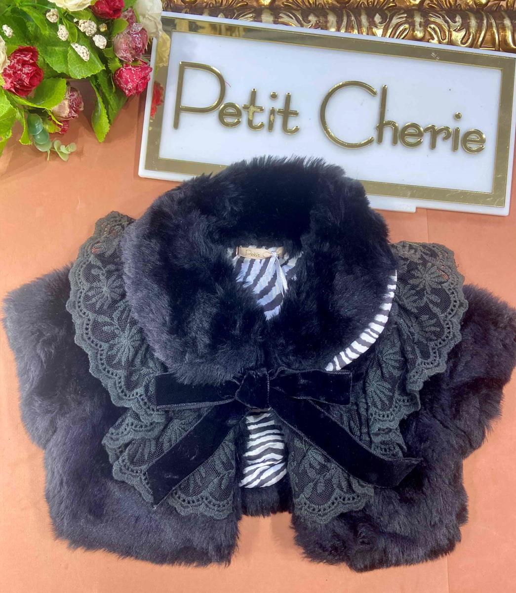 BOLERO INFANTIL PRETO DE PELE, COM FORRO DE ZEBRA, DA MARCA PETIT CHERIE