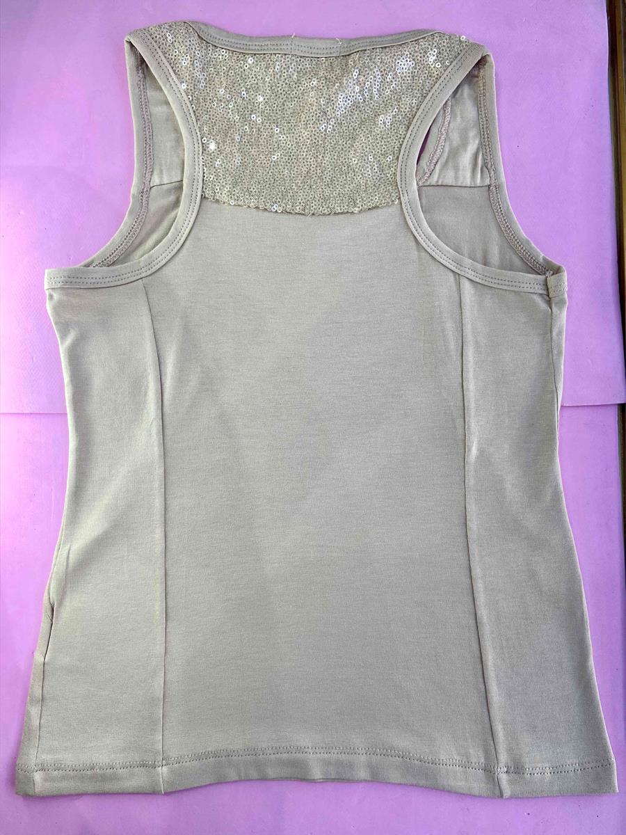 BLUSA REGATA INFANTIL BEGE, COM DETALHES DE PAETE DA MARCA FANY LAND