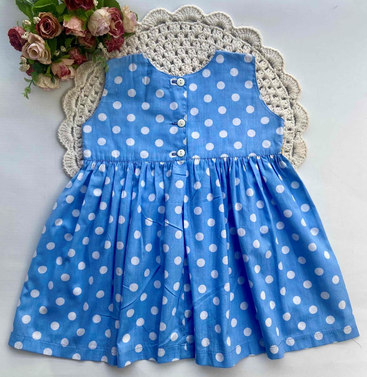 VESTIDO INFANTIL DE BEBÊ PITCHUCA AZUL DE BOLINHA