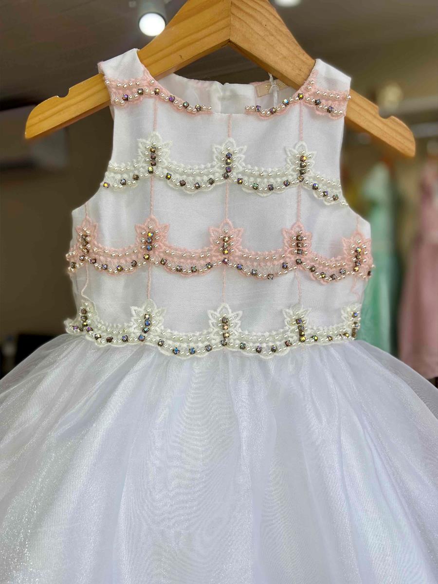 VESTIDO DE FESTA INFANTIL PETIT CHERIE BRANCO ORGANZA COM APLICAÇÃO DE PÉROLAS
