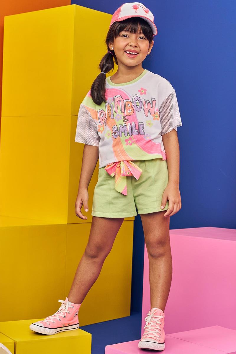 CONJUNTO INFANTIL ESTAMADO, COM SHORT VERDE, DA MARCA KUKIÊ